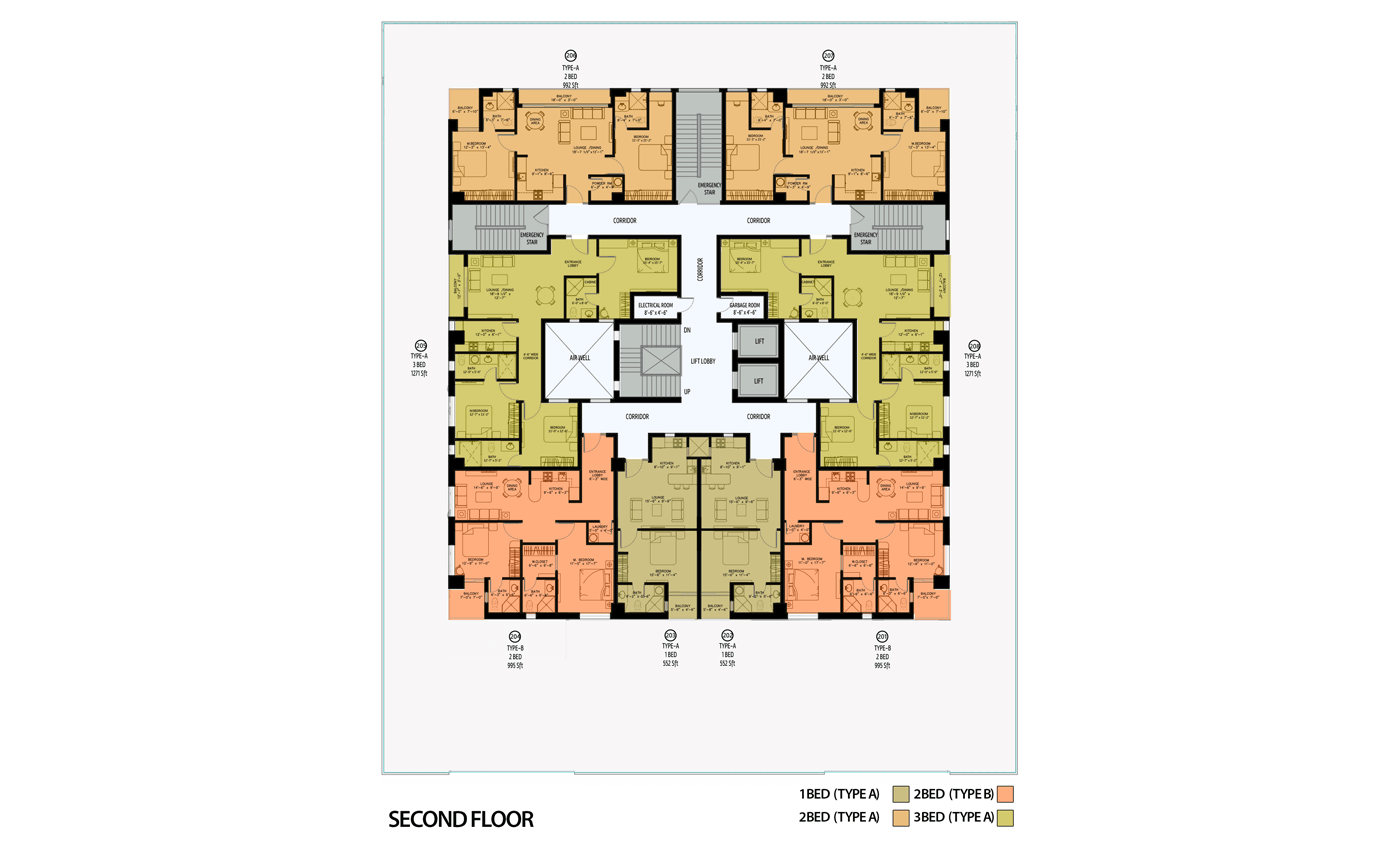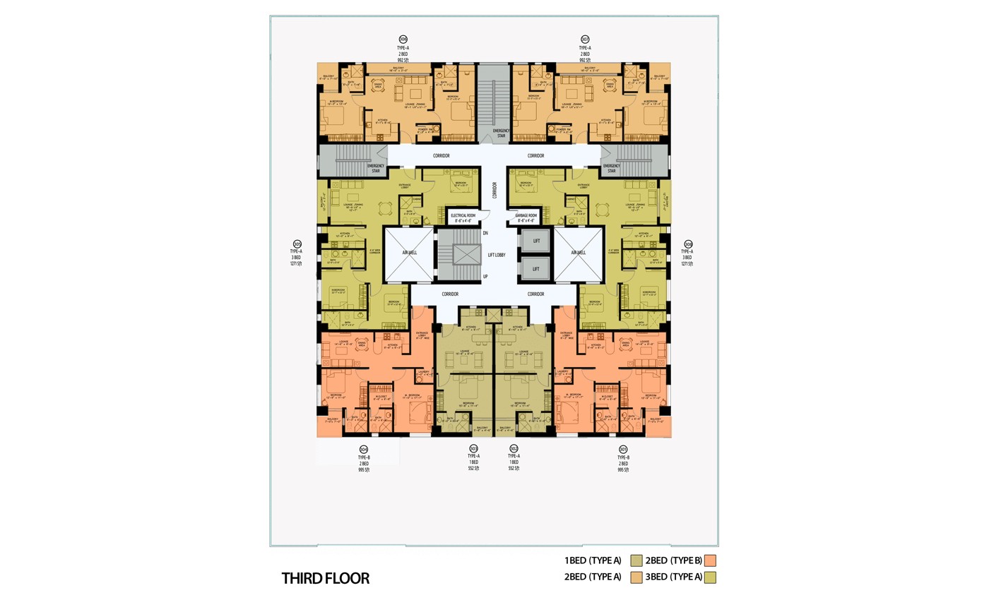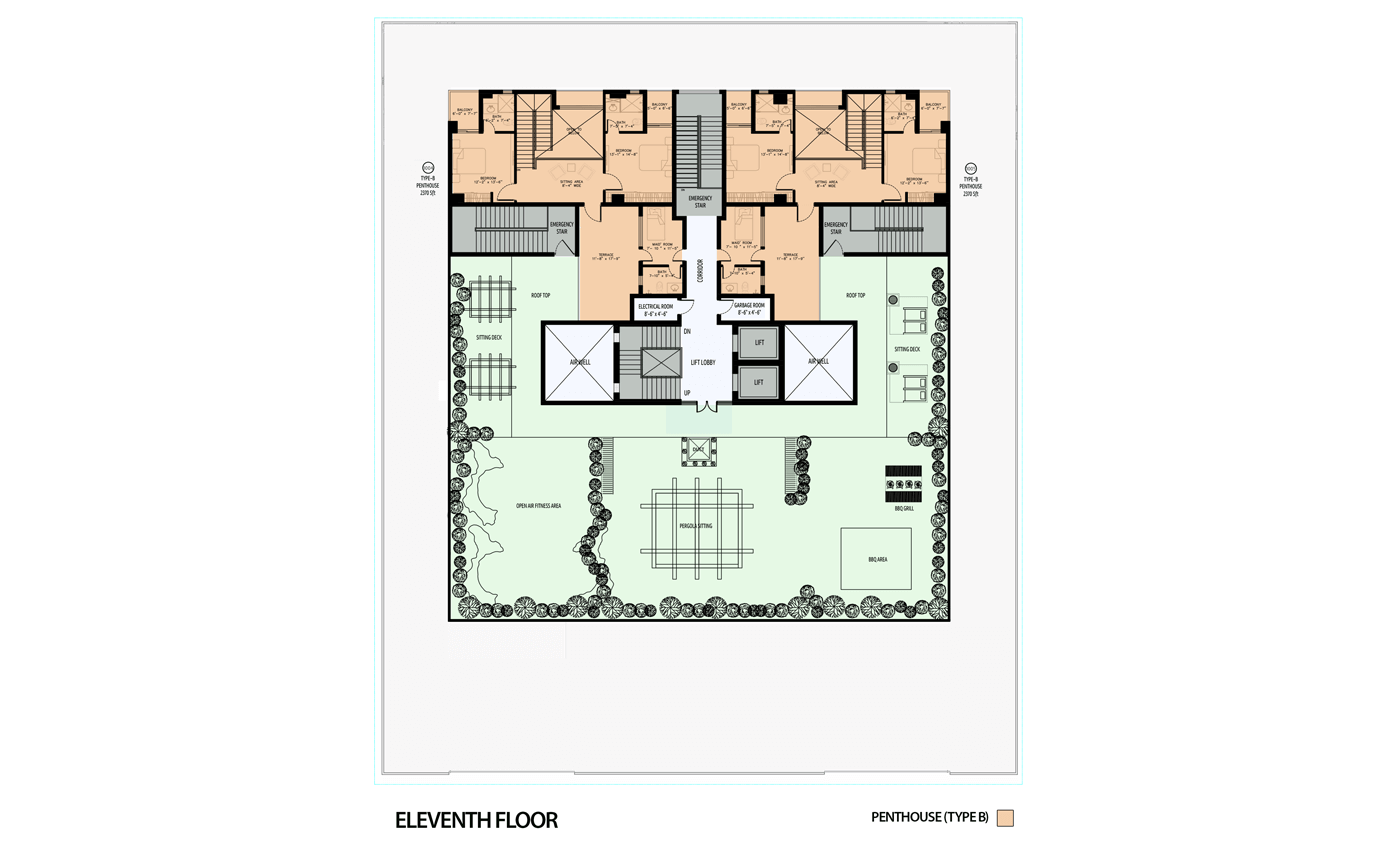 The building consists of 15-floors, bifurcated into 3 basements, a ground floor, and 11 residential floors. The landscaped rooftop and entrances offer expansive green spaces within the building for residents' comfort. The apartments are naturally ventilated and provide stunning views of the city. Additionally, sufficient basement parking and convenience stores ensure hassle-free living.