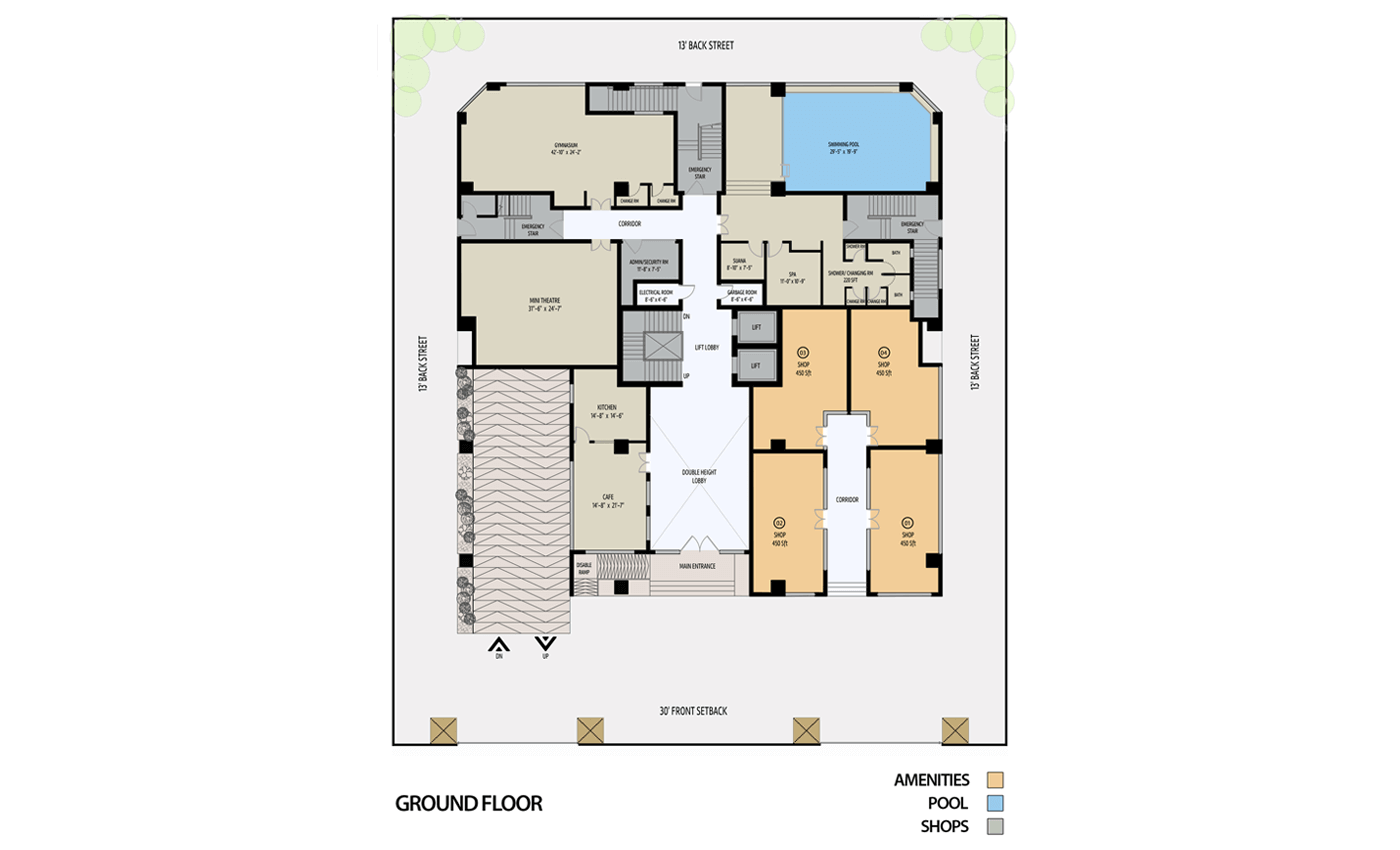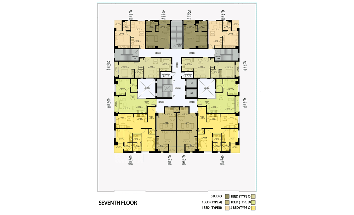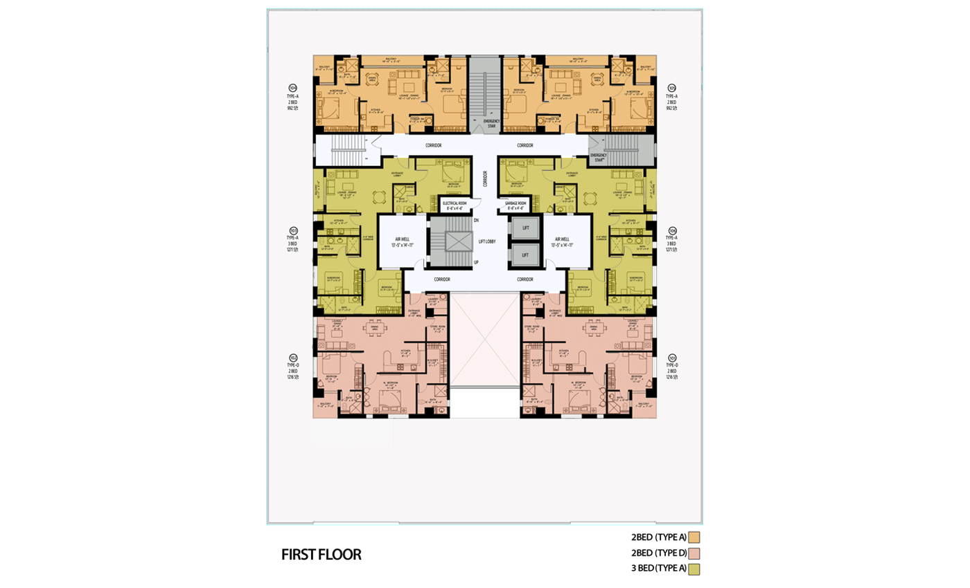 The building consists of 15-floors, bifurcated into 3 basements, a ground floor, and 11 residential floors. The landscaped rooftop and entrances offer expansive green spaces within the building for residents' comfort. The apartments are naturally ventilated and provide stunning views of the city. Additionally, sufficient basement parking and convenience stores ensure hassle-free living.