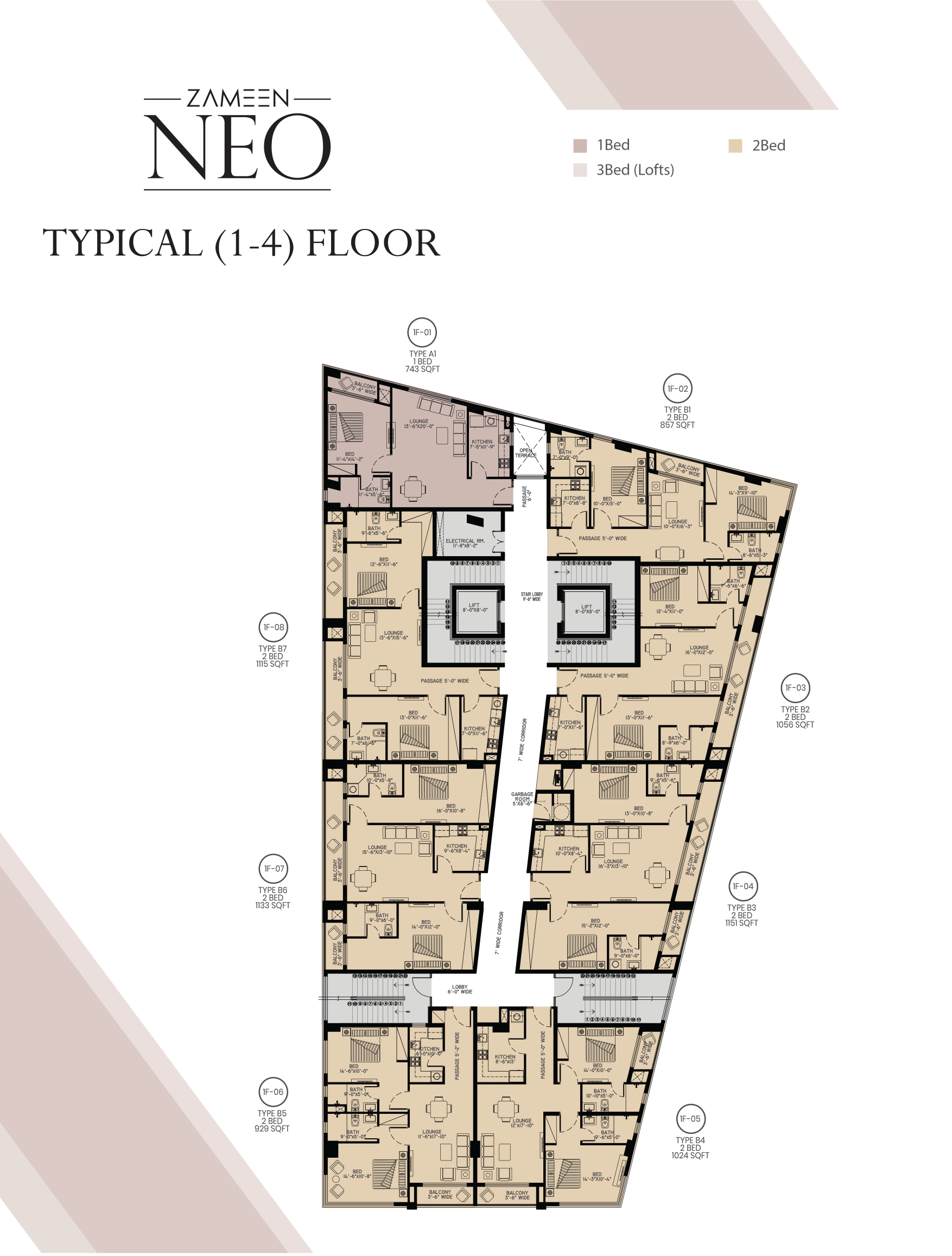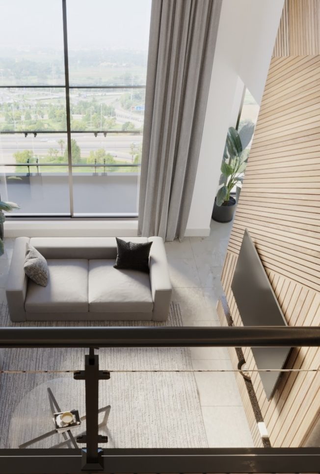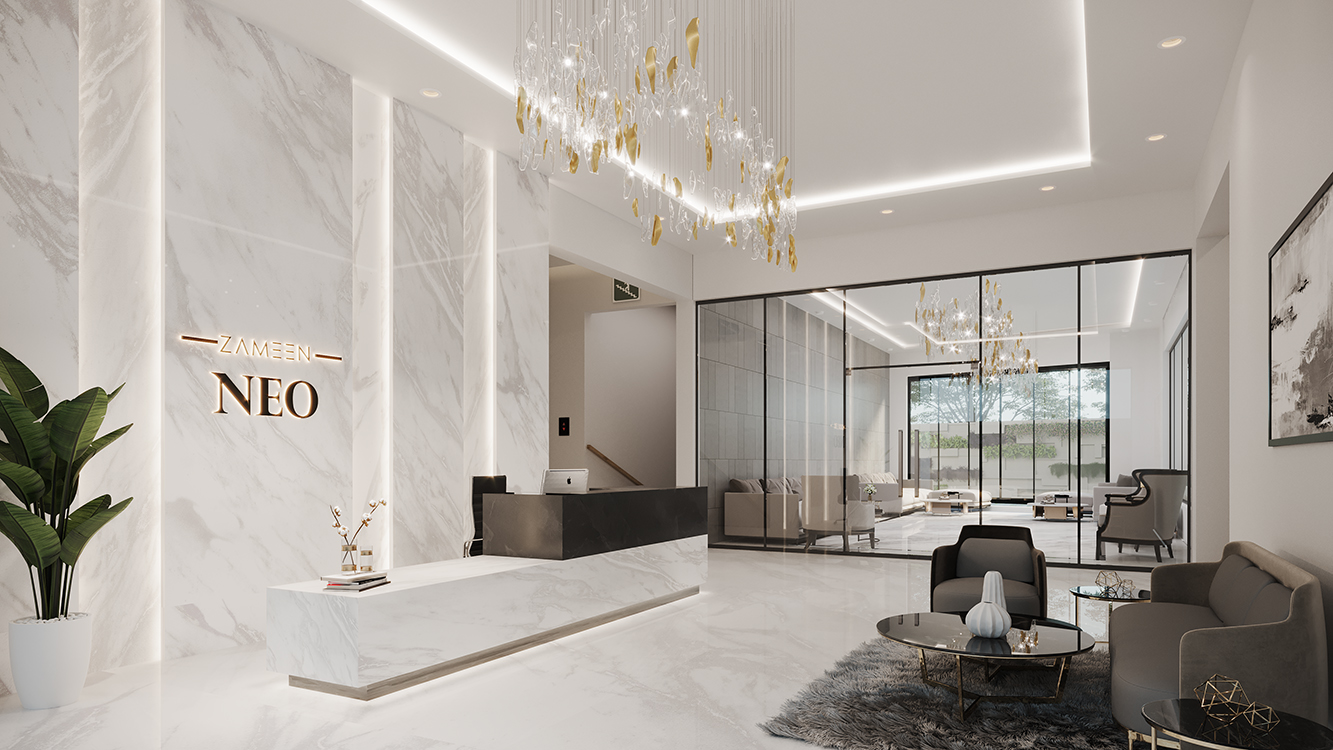 A ground-plus 6-floor building, Zameen Neo brings a new typology of apartments to Lahore. Introducing loft culture to the local real estate industry, the project offers a chance to enjoy exclusive double-height apartment living. A sophisticated design inspired by neoclassical principles and infused with contemporary elements, solid construction, and a wide array of amenities, Zameen Neo Is a striking project that is as alluring from the outside as it is from the inside.